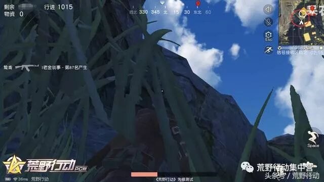 由于信号区的刷新,补漏君迫不得已转移到了冷门的采石场,最开始在采石场的悬崖峭壁顶部蹲着下方的敌人,这时,一个穿着吉利服的玩家在悬崖下面路过,依靠地势的优势分分钟在顶部把他带走,由于眼馋吉利服玩家的装备,就这么跳下去了。