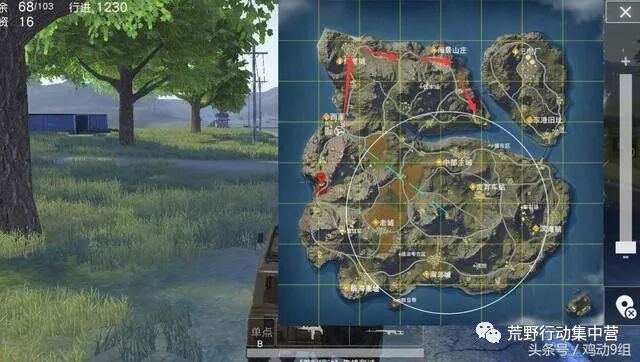 当开始缩圈的时候也不要着急往安全区里跑,要沉着冷静。按照计划规划好自己的行进路线,当然原则上是贴着安全区的边线,尽量延长自己跑路的时间跟距离。 要随时关注红圈缩到什么位置了,做到随时调整自己的行进路线。同时也要尽量避开可能人多的区域保证自己的安全,毕竟我们是来跑路的不是来打人的。