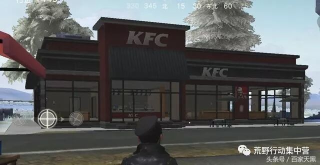 在进入荒野行动游戏中后可以看到主城与老城原来的咖啡厅变成了现在的一个超大的KFC店铺,而且里面一应俱全,前台,餐桌,点餐机等等都做到非常逼真,画质感也不错。