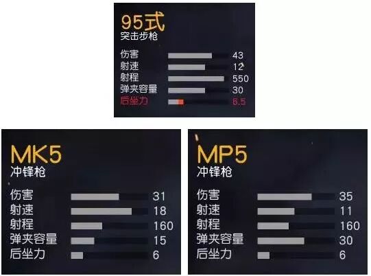 (满配的95式与两把冲锋枪的数据对比) 满配性能令人咋舌,搭配配件时,最小后坐力降低到了 冲锋枪 的水平。 满配的情况下,95式有着比M4A1、S-ACR更高伤害的同时, 后坐力还大幅减少 ,射速还依旧保持着突击步枪的水平。 这就意味着满配的95式更像是一挺 “小钢炮” ,高输出、低后坐力,可以说是荒野行动当之无愧的“国产荣光”了。