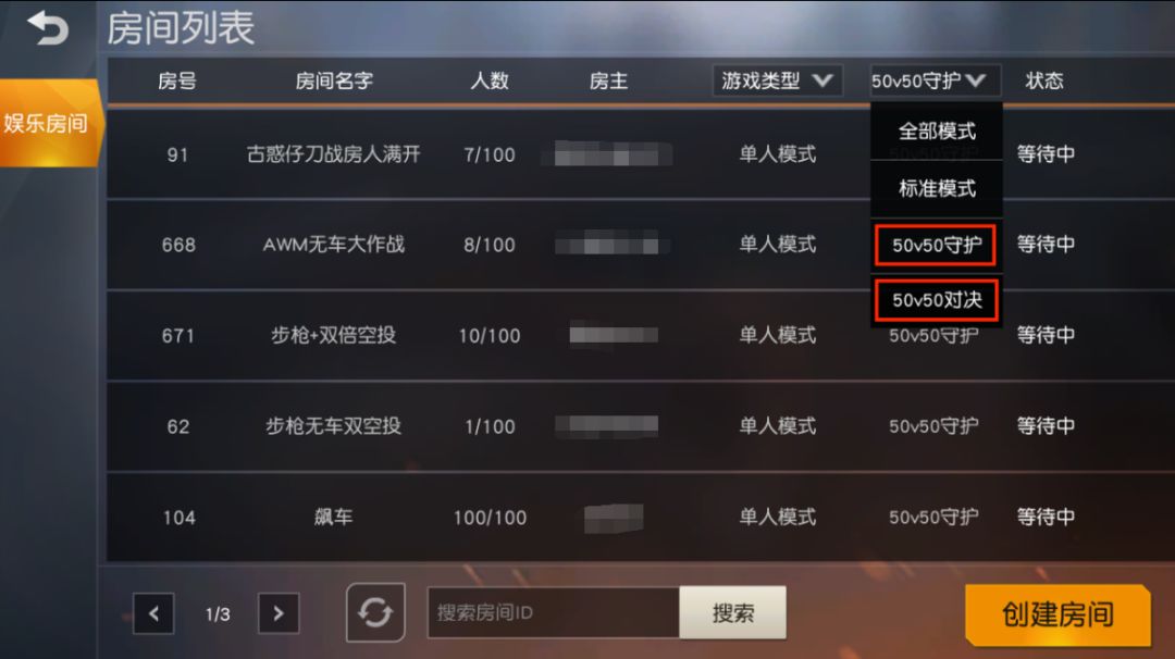 房间设置: 只有近战武器,无载具,无空投