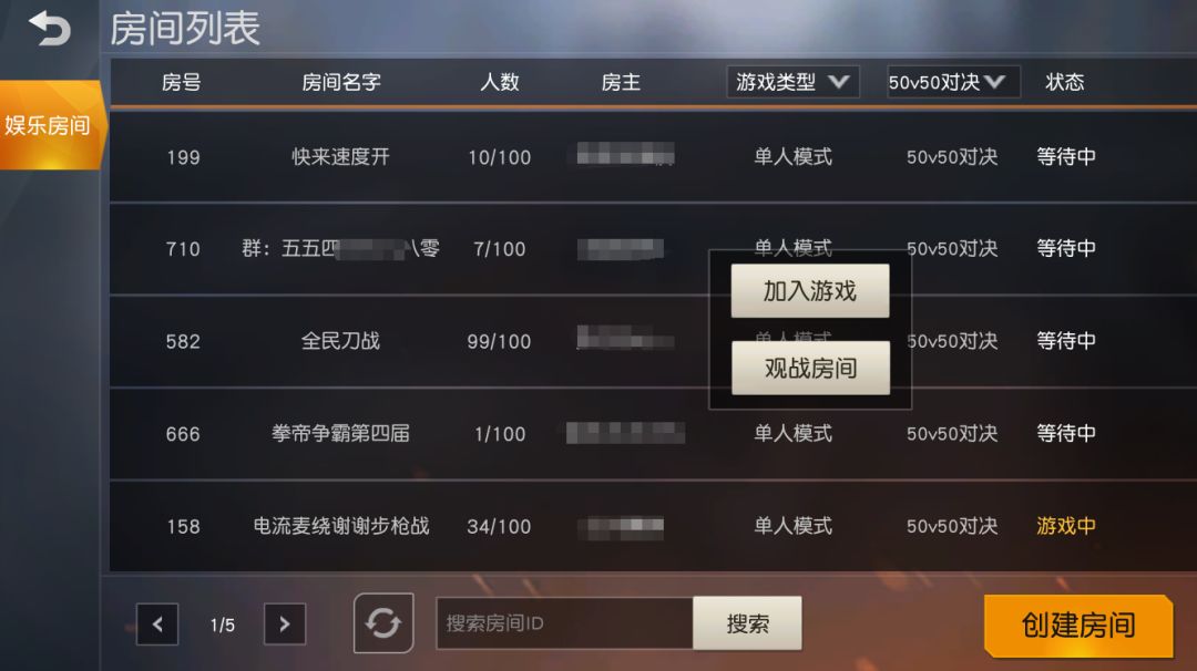 可以自己开房间,也可以进入别人开好的房间(只需 点击房间列表 ,选择自己喜欢的房间,加入之后等待房主开始比赛即可)。