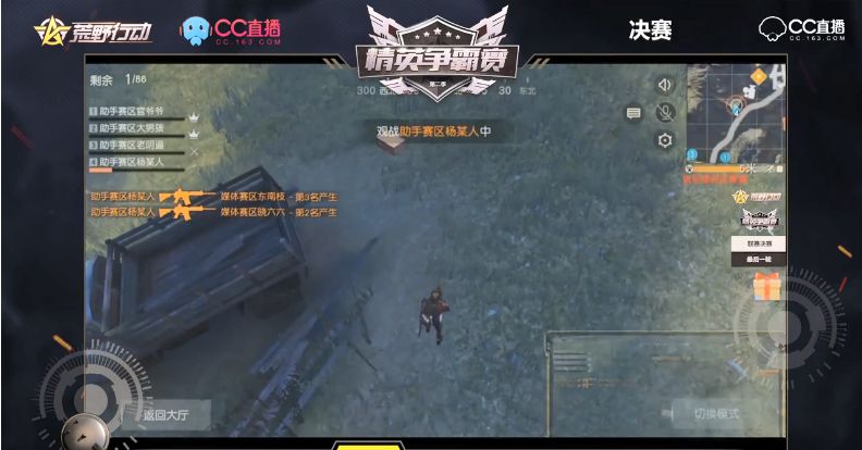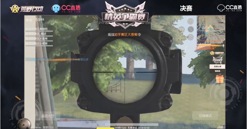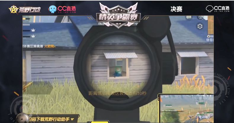 助手赛区脑残片 躲在树后开镜观察附近的房间 看到敌人,他立马进行射击