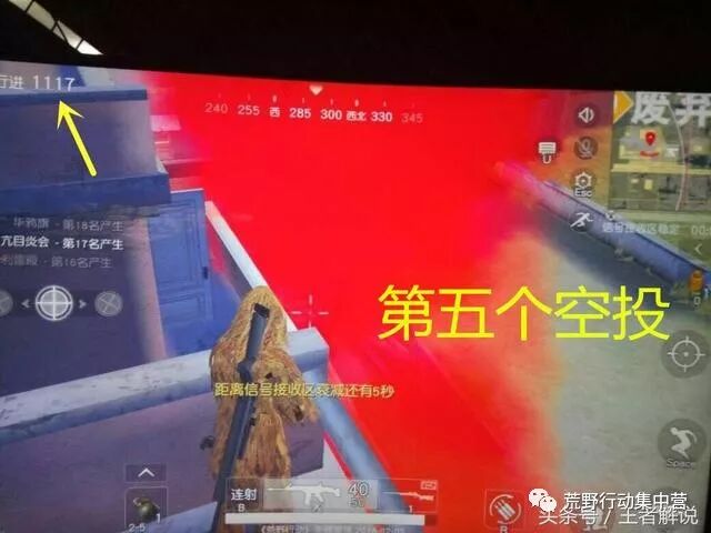 但是这位小伙伴还是选择了继续蹲点。因为他这个位置一直处于安全区之内,所以也就没有转移的必要了。就这样,这位小伙伴在屋顶上待了一整局。好笑的是,这个位置一直处于安全区中,而期间居然有五个空投落在了这栋房子周围,其中一个还正好落在屋顶上了