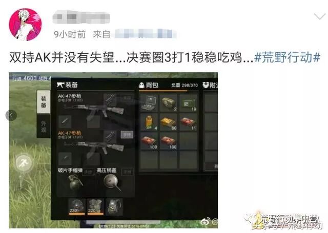 荒野行动:带AWM算什么?这位玩家带了2把AK47成功吃鸡!
