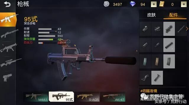 枪械配件包含枪口、瞄准镜、弹匣和枪托,用来优化枪械战斗能力。
