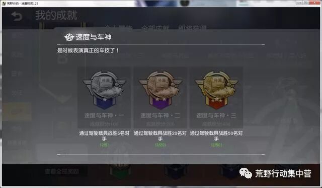 TOP.5速度与车神 这个成就看似比较容易,在手游版上移动相对缓慢,能够使用载具击杀玩家确实不是一件难事,但是对于PC版的荒野行动来说,攻击车上的目标实在太容易了,稍微左跳右跳,对准驾驶位一堆扫射,轻轻松松就能将敌人从车上打下来,简直是开车送了快递,而且,对于第三阶段成就,更是需要达成50人的击杀,可以说是非常的不容易了。