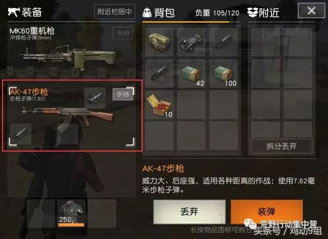 AK-47步枪 作为《荒野行动》中目前唯一一把使用7.62子弹的步枪,可能你在开镜的情况下使用AK的时候,你可能感受不到AK的真正强大之处,甚至还会觉得不是很好用。 但是一旦你拿着满配S-ACR却被AK-47贴脸近身,一梭子带走之后,你肯定会感概,AK-47真的是太猛了。加上之前的更新,AK-47的大后坐力被减弱之后,越来越多的人变得更加喜欢使用AK-47了。