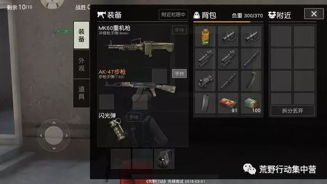 在“荒野行动”中,很多朋友在捡拾装备的时候,会因为背包里的药品过多或者配件过多导致子弹装不下,如果你拿着一把M4A1和一把AK47那么每一种子弹最多装配200发,再加上药品和配件,基本上就装不下东西了,那如果你还想要继续捡子弹怎么办呢?今天就给大家教一个小技巧,让你可以在背包中装下一万发子弹!