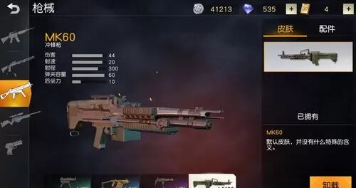 荒野行动中有那么些武器十分的稀有,只有通过空投或者少量刷新才能获得!虽然拿到也不一定能够获得第一,但是至少还是能够体验下和其他的枪械武器有什么不一样。下面就介绍下游戏里最稀有的四大武器是什么。 MK60 伤害指数:★★★★ 诱惑指数:★★★☆ MK60拥有着超越大多数步枪的伤害,不仅如此,MK60的射速还能与冲锋枪相媲美,中近距离MK60的超强火力让很多步枪玩家都要退让三分。把MK60作为空投中的武器毫不过分。发现MK60后很多玩家更是直接抛弃了步枪,如此有魅力的武器不捡未免也太可惜了吧。