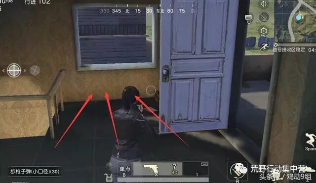 在这个位置我们就可以利用游戏第三人称视角的特点,在敌人观察不到的位置,获得周围环境的视野,再确定攻楼敌人的为之后,我们就可以转被动为主动,主动出击天降神兵提前干掉对方。
