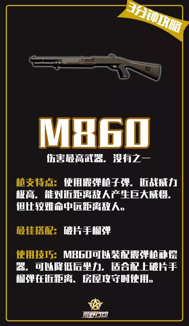 1、M860在 近距离作战 时,有着很高的威力;配合破片手榴弹上,适合用在 房区的攻守战 中。