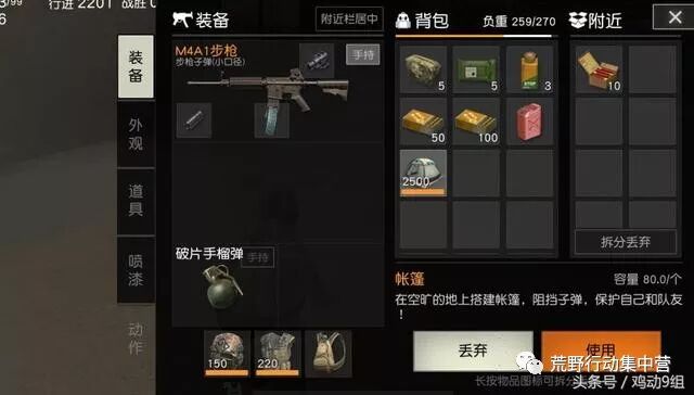 同无人机一样,在背包中点击使用按钮之后,就会在人物的面前搭建一个拥有2500血量的帐篷。是的没有看错,帐篷可是拥有2500血量哦。这个血量可是比三级甲不知道高到哪里去了。