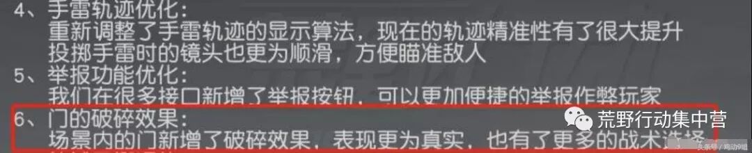 在更新之后,在之前的版本中只能用手打开的木门现在已经可以被枪械攻击并且彻底的击碎。 这个更新不仅仅是增加了游戏的真实性,毕竟木门打不碎太不科学了。同时这个更新也让那些喜欢躲在门后守株待兔的LYB们再也没有办法得意了。 以往那种开门就看到一把枪对着自己的日在再也不会出现了,如果察觉到门后有人或者不敢肯定门的后面是否安全,那么还犹豫什么呢?掏出你的武器对着门就扫射吧!说不定你还有意想不到的收获哟。