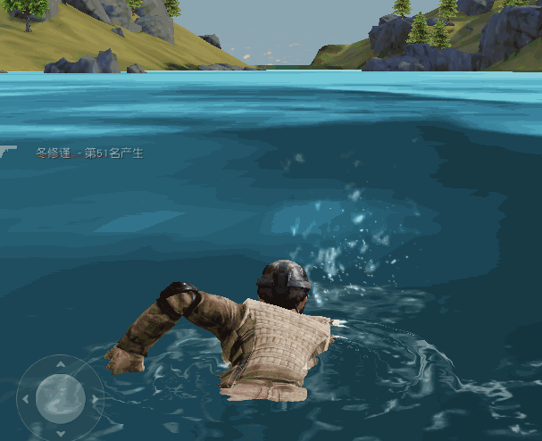 靠墙收枪 【人物潜水】 以后玩荒野行动也能潜水啦!首先这个潜水呢,在我们进入水里的时候可以实现潜到水里而不被发现,但是呢潜水的同时我们有一条氧气条,在潜水的时候慢慢消耗掉氧气,如果氧气用完了,我们就会被持续扣血。同时也优化了水的画质,我们可以观察到水里。