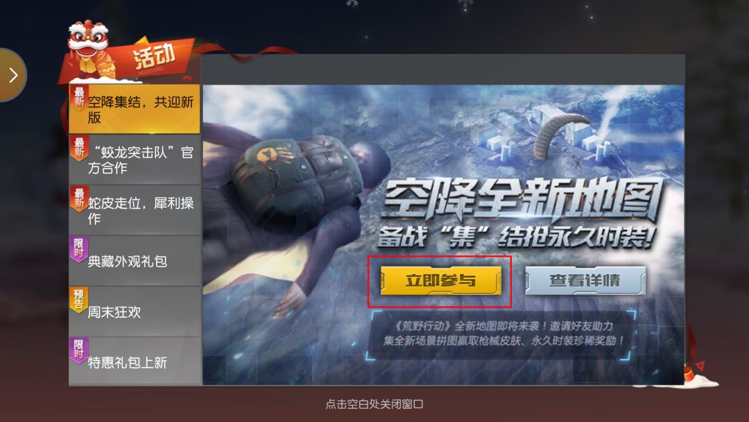 做导游带你们逛了一大圈 荒弟怎么会让各位鸡友空手而归呢 移动端的老铁 赶紧进入游戏 活动 页面 参与【空降集结,共迎新版】活动