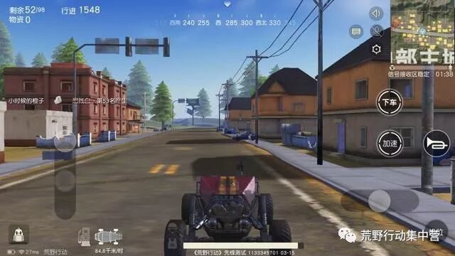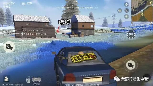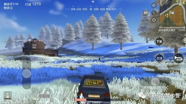 三、前期打法 落地后有两种情况: 1、附近小房区有人,这时候我们直接选择“乘坐”上车,等待敌人搜完房子往别的地方跑的时候,快速换位到驾驶位,进行追击。 2、附近小房区没人,这时候我们直接上车,开车往周围最近的中小房区移动寻找机会。 前期正常能拿到人头数0-5个