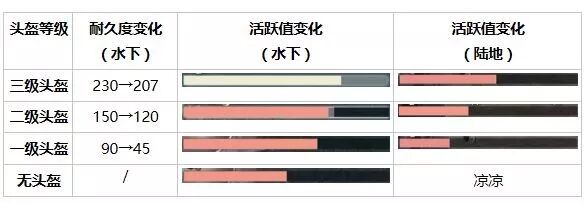 经测试,天命妹发现, 潜水约20秒后 ,图标完全变红, 呼吸值降为0 。1~2秒后,活跃值开始下降,而且 下降速度较快 。