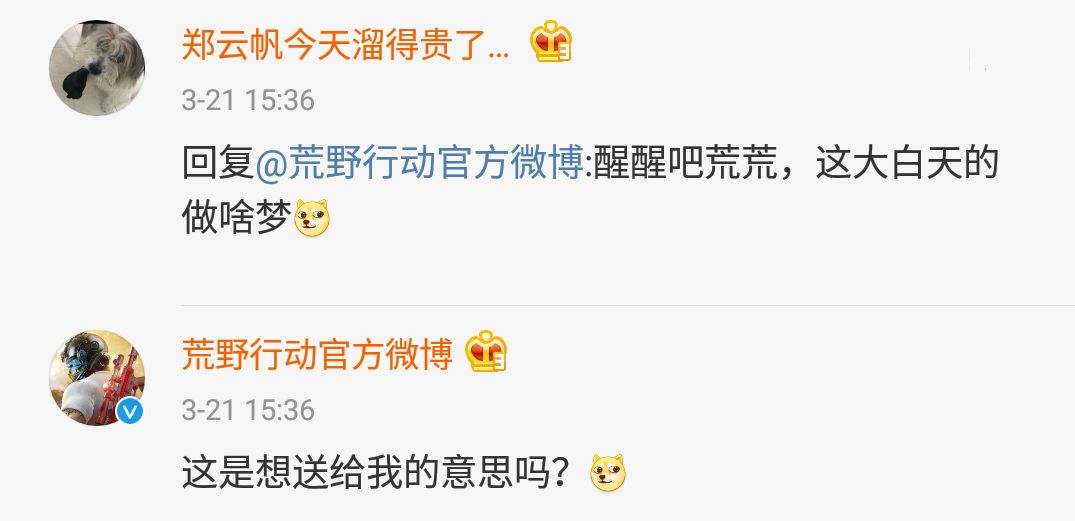 上周的微博精彩回复 就先展示到这里啦 欢迎大家踊跃提问和留言噢 点击 @荒野行动官方微博 参与谈论