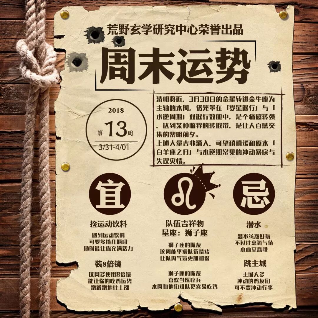 想知道这周周末运势如何? 什么样的队友才能带你成功吃鸡?