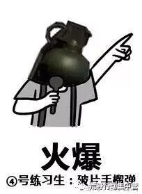 4号练习生——破片手榴弹 它天生火辣、脾气暴躁。它像是流星花园里的道明寺,帅气、纯真又勇猛。任谁不服,它只用实力说话。它是本次"道具练习生"中实力最为强劲的一名选手,请大家记住它。