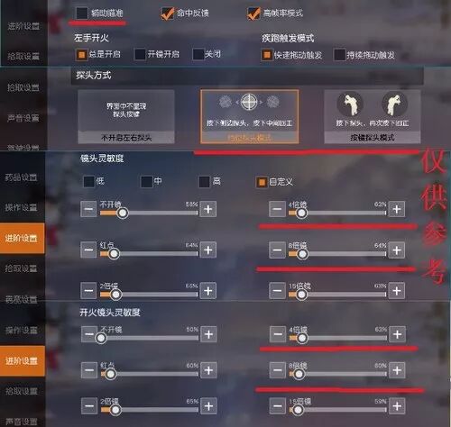 狙击枪的基本常识 工欲善其事必先利其器,想要成为一个优秀的狙击手,必须要对自己手中的武器有一个清楚的了解和认识。今天主要讲的还是关于毛瑟(98K)、M24、AWM这一类的大狙,而不是连狙,因为连狙不具备一枪毙命的伤害(敌方光头除外)。 由图可见,伤害及性能方面:AWM>M24>毛瑟。毛瑟作为最常见的狙击枪,相对于其他两种枪械,更为容易获取,它与M24并没有很大的差别,因为对于爆头来讲,1级2级头盔同样都能一枪撂倒。同样这也是高额伤害的AWM可怕之处,AWM爆头不用考虑敌方是几级头。枪械配件方面:狙击消声器>补偿器>消焰器,快速扩容弹夹>扩容弹夹>快速弹夹。这个排序是毋庸置疑的。 此外,黑夜、雾天模式不推荐萌新使用狙击枪,大狙的标配是8倍镜+4倍镜。要想用好狙击枪,务必在游戏设置中,关闭辅助瞄准和陀螺仪,开启左右探头射击,将4倍镜和8倍镜的灵敏度调整至自身操作舒适。