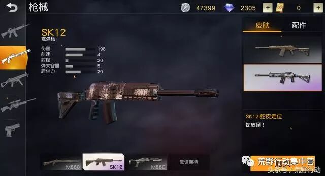 M860霰弹枪,拥有225点伤害,威力超大,被称为守楼神器,曾经有很多老玩家尝试过,仅用一把M860抵抗一队敌人攻楼,并且都稳稳守住。 SK12