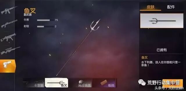 鱼叉这个冷兵器虽然不是伤害最高的,但是由于可以水下进行攻击它的攻击距离却是冷兵器中攻击距离最远的。