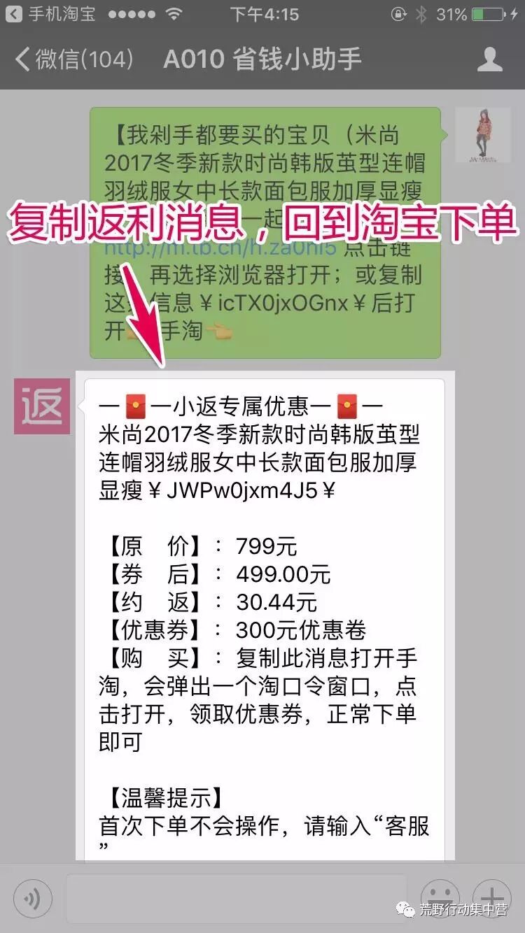 2、复制机器人反馈回来的链接,回到淘宝领取优惠券,就可以下单啦!购物成功有会有付费成功的提示,确认收货也会自动提示!