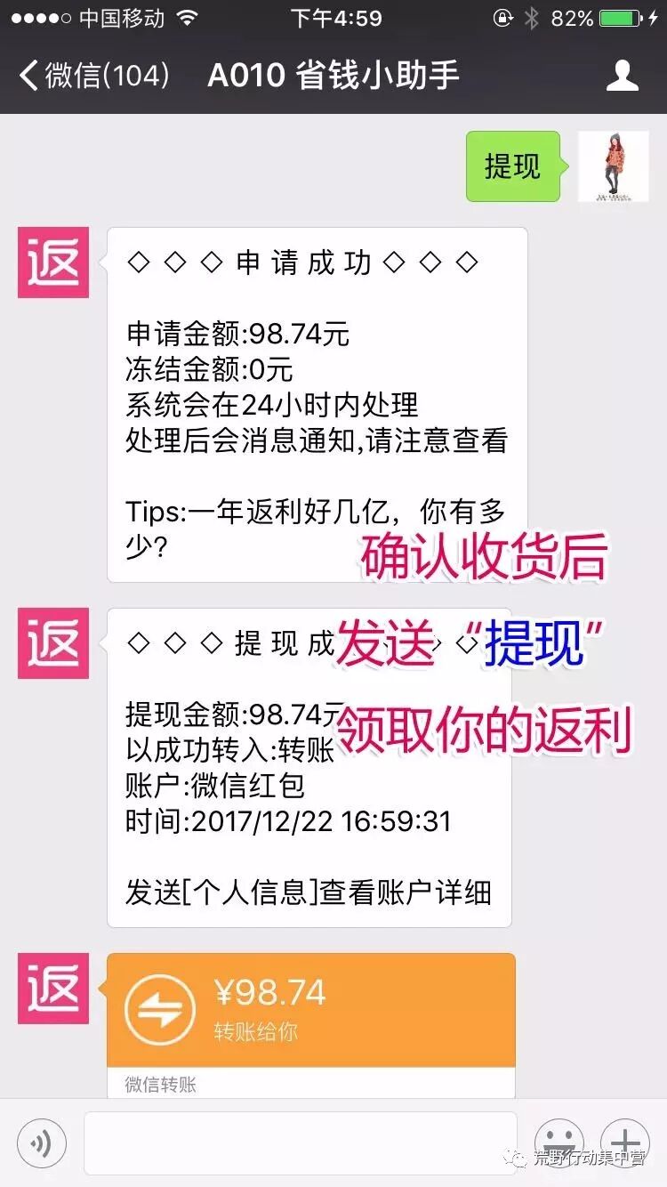 3、付款成功后机器会自动提示“ 付费成功 ”,在淘宝 确认收货 后发送“ 提现 ”就能提取红包了。