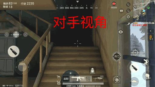房屋介绍: 房屋分布较多,可以不开门就进入里面,一楼有一个柜台,但小编不太喜欢蹲在里面,而二楼比较空旷。 对手视角