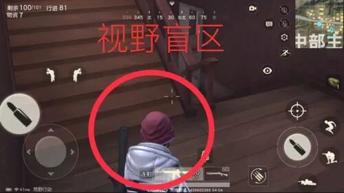 比较空旷,没有那么多小屋,但是如果手机亮度低点,还真的不好发现敌人。 那这个建筑有什么蹲人姿势呢? 1.利用敌人刚上楼梯的使用盲区,卡住楼梯