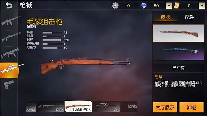 荒野地图上最常见的狙击枪, 低伤害和射速高后坐力 ,但是优点就是比较容易获得,基本上每局每个人只要认真找都有!手感好,首选狙击枪。