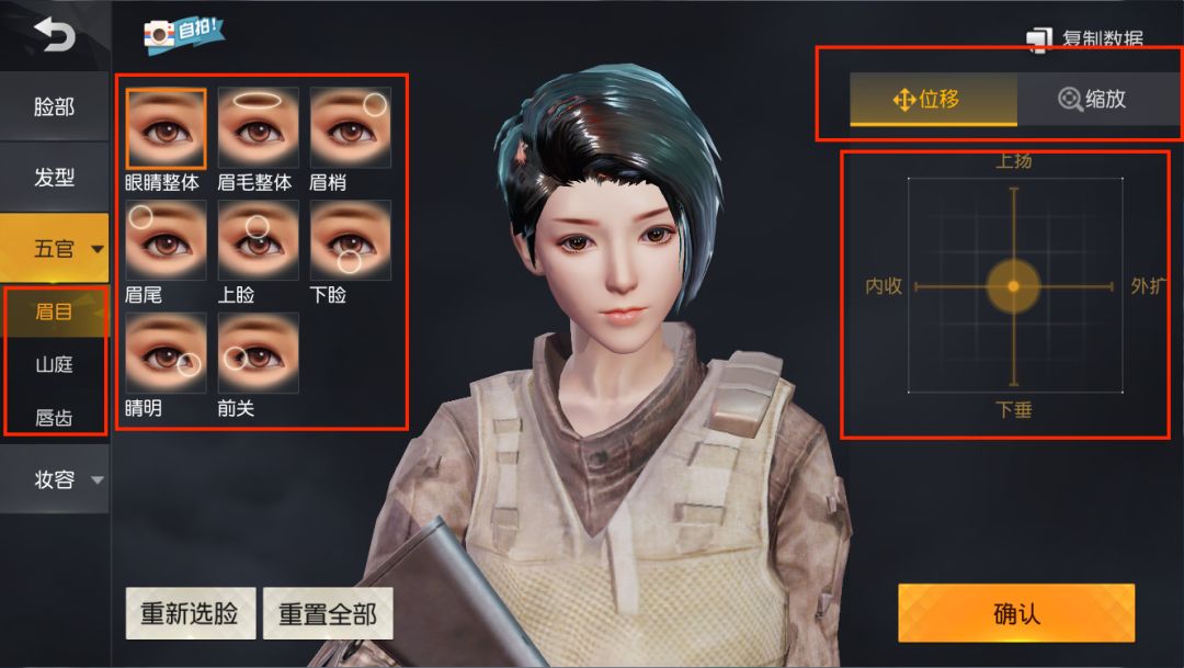 捏脸系统中的五官设置分为 眉目 山庭 唇齿 三个大类,每个大类下都有数个小类共 18个 ,你喜欢的样子荒野都有!
