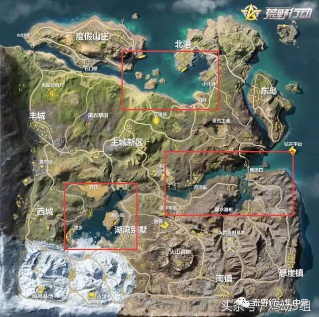 很显然这个道理大家都是很明白的,就有一个小伙伴专门把新地图的所有的的资源点进行了一个全局的总结,其中说到的北港,西城,南镇,丰城这些地方都是建筑物密集的地区,在地图中的定位跟老地图的那些大城市是一样的。 物资丰富,交通便利,绝对是每局游戏所有玩家都必争的一些地方,当然战斗也会异常激烈。