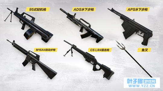 水下特殊地貌导致原有的陆地武器和战术都无法使用。因此,在新版本中,游戏内加入了两把水陆两用的枪械武器,还有一把近战冷兵器鱼叉,让你即使在水中也能有一战之力。