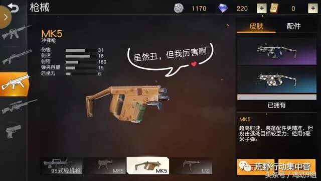这个枪虽说丑了点吧,不过精确度挺高的,而且后坐力小,只是攻击远处比较乏力,近战还是不错的。 第三:此时,你可以开始慢慢苟了。这个游戏并不是谁杀的多,那谁就是赢家,那是需要看谁能够活到最后,那才有笑的资格。 永远记得,第二名和第九十九名是没有任何区别的。