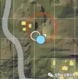 信号圈刷新时间游戏开始,当地图上刷出一块安全区域后,天命妹便开启了暴走模式。到了第五次信号收缩时,决赛圈基本上只收缩在一小块区域,如下图所示: