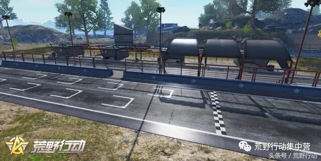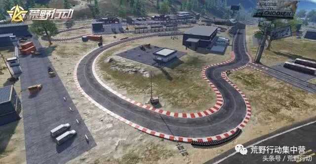 太阳能电场的风景同样优美,开阔、平坦的地面上,散落着许多的太阳电池板。相信细心的荒野精英已经发现,从高空望去,可以看见太阳能电池板拼合成一个《荒野行动》的LOGO! 赛车场