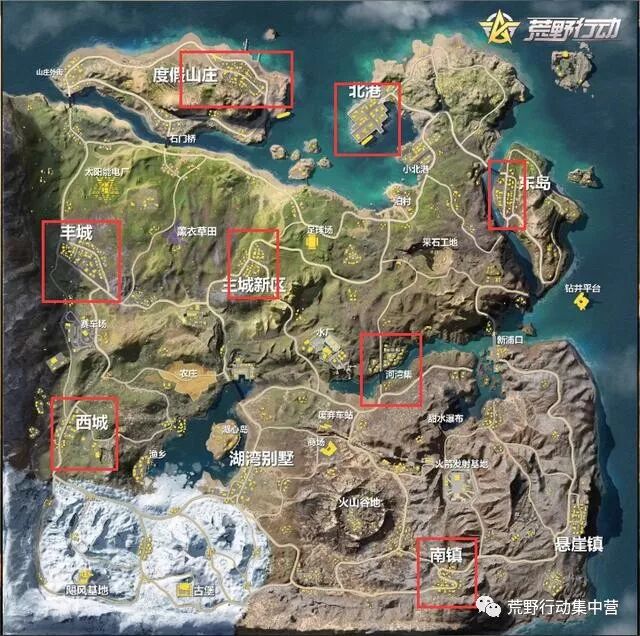 从上图可以明显看出,红框位置建筑物密集,好东西肯定少不了,但是降落的玩家相对的也比较多。 策划小哥哥是真的贴心(为你痴为你狂为你哐哐撞大墙!),考虑到了新地图的面积较大,所以在地图上下左右都安排了这种大的资源点。由于大家一眼就能看出来这些地方很富,所以小编也就不多做介绍啦~ 【去过的人都觉得富系列】