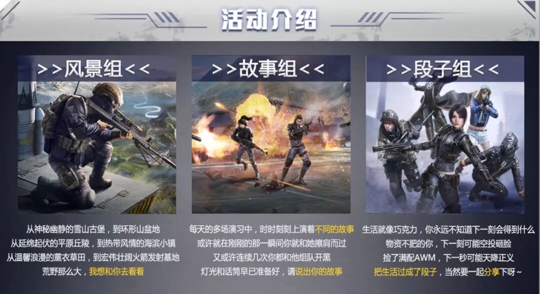 活动说明 1.玩家在体验全新地图“飓风半岛”时,截取游戏内相应图片,选择参与组别,提供一句话作品说明即可参与活动。