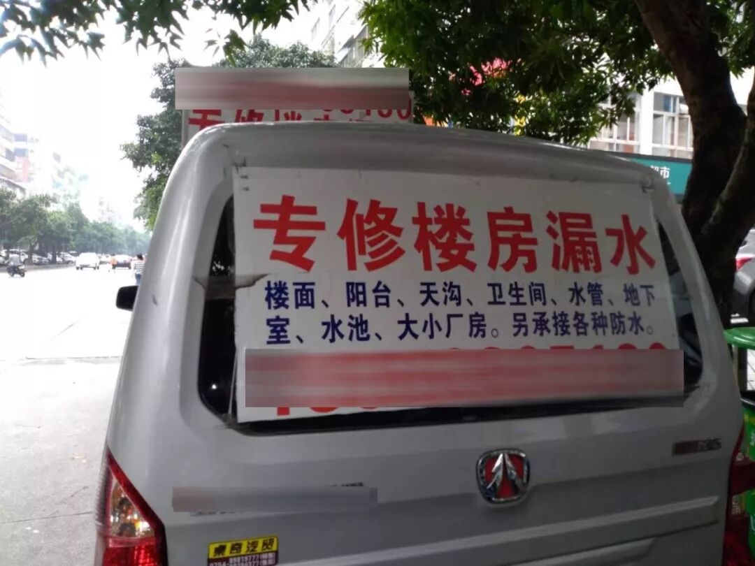 没错,就是我们大名鼎鼎的补漏车! 银灰色的小面包车 车窗上贴着“专业补漏”的广告 还会循环播放语音