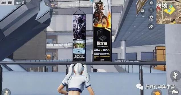 这个位于商场的巨幅广告,上面印着荒野行动的宣传画,以及游戏的玩法介绍。根据狗子的观察,宣传画的内容会时常变动,非常显眼。在商场中心的天花板上,随处都可以看到。