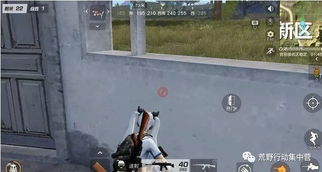 大家有没有注意到墙壁上红色的禁止标志,它就是告诉大家,你的枪离墙壁太近,已经把你的枪收起来,不能开枪的意思。在这之前,玩家如果端着枪趴太靠近墙壁,它就会自动穿墙,很容易暴露位置。