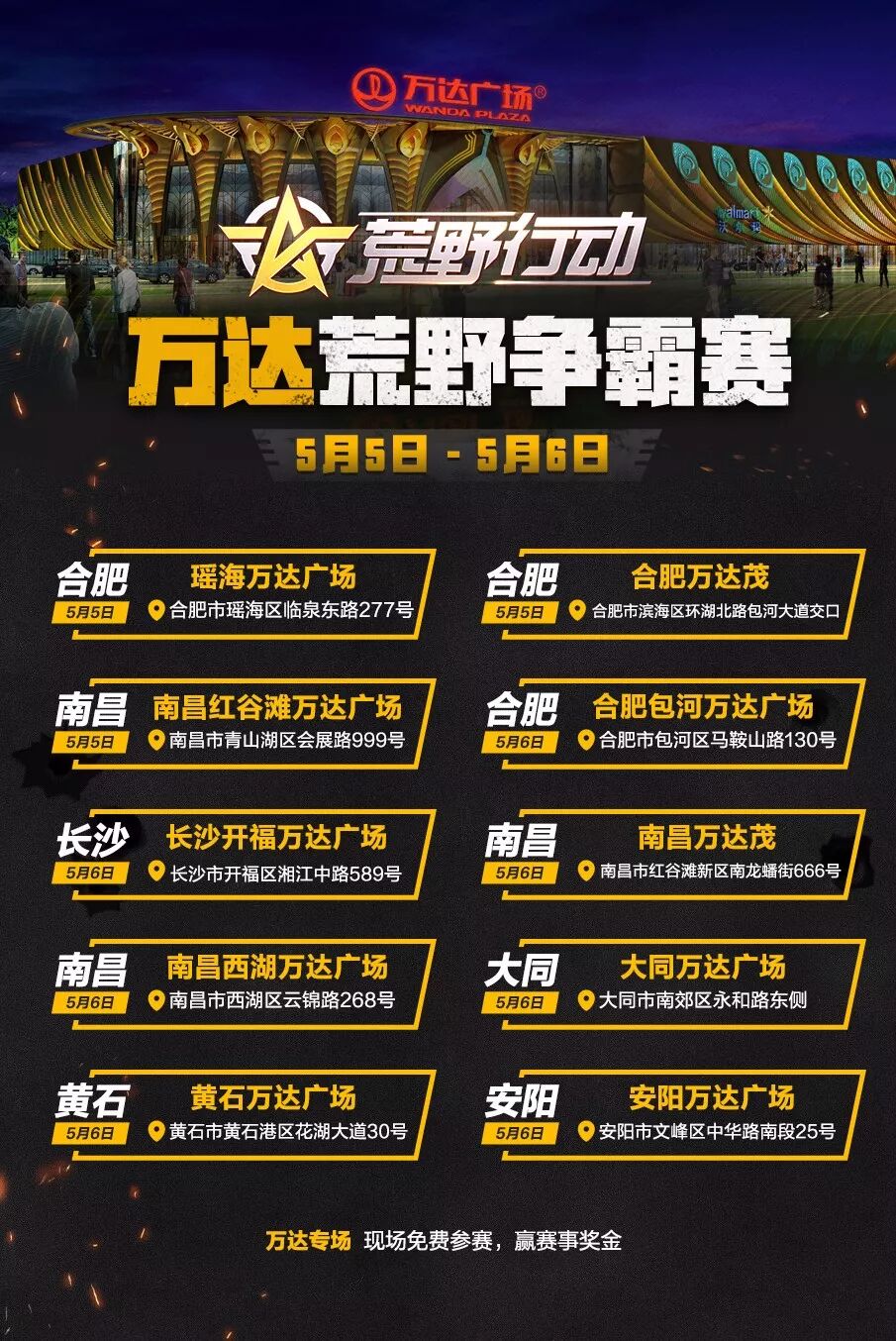 本周末 荒野行动将联手全国各地万达广场 举办 【万达荒野争霸赛】 空投好礼准备好了