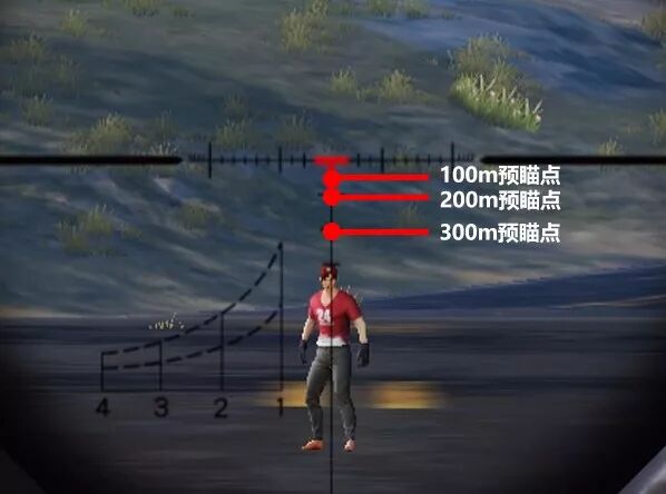 为了方便荒友们学习记忆,天命妹穷尽所学为大家作画一幅: 在100、200、300米三种情况下,天命妹推荐毛瑟狙击枪预瞄点。