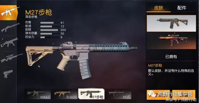 在如今,相信问在座的各位小伙伴,你们的最佳装备配置是什么,大概这名单里面都会有M27这把步枪。是的没错,M27现如今可以称得上是荒野行动步枪界的霸主,几乎无枪可以撼动它的地位! 凭借着优秀的基础面板属性,特别舒服的使用手感,再加上可装配5个配件的高上限发展空间,M27从在荒野行动中出现,直接就被称为步枪之王。