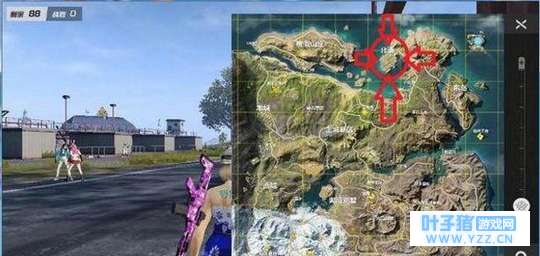 事实并非如此,官方爆料的可搭载电梯其实是在飓风半岛地图北边靠近正中的北港资源区,详细位置如上图中的红圈标注所示。