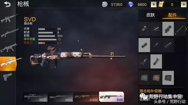 国产狙击枪88式,射速为8,却拥有54点高额伤害,满配之后的后坐力仅有7.2,可以说是非常稳定。很多人用它打出霰弹枪的感觉,近距离射击也能发挥它的威力。 SVD