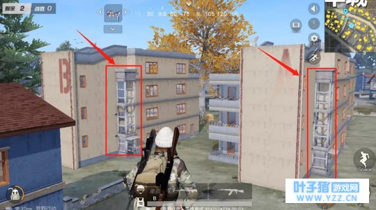 (该图不代表原画质) 这种建筑有4层楼,不仅可以选择爬楼梯上楼,也可以选择乘坐电梯登楼或者爬水管上天台。 但要注意的是,电梯只在1楼、3楼停止一小段时间,建议荒友们在攻楼时先观察敌人所在楼层情况,再判断要选择哪种方式登楼。